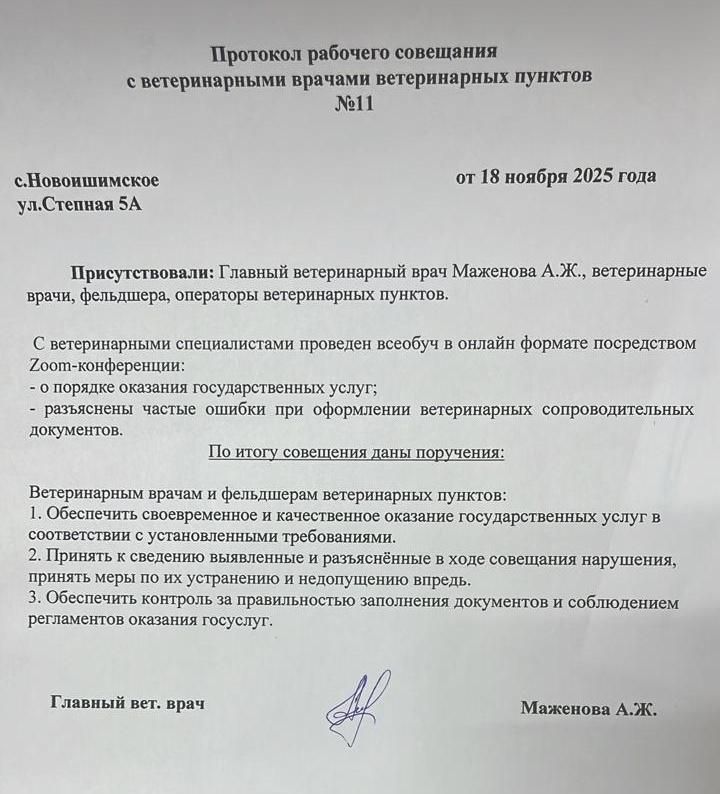 Присутствовали: Главный ветеринарный врач Маженова А.Ж.,ветеринарные врачи, фельдшера, операторы ветеринарных пунктов.